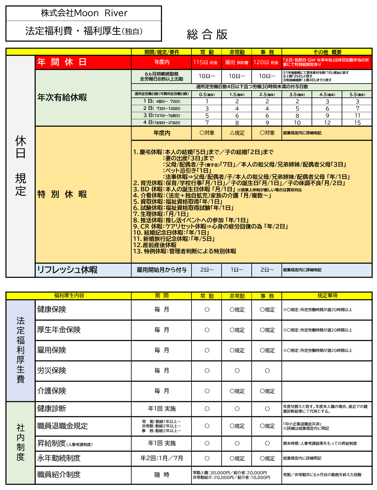 「株式会社MoonRiver 法定福利費・福利厚生(独自)総合版」